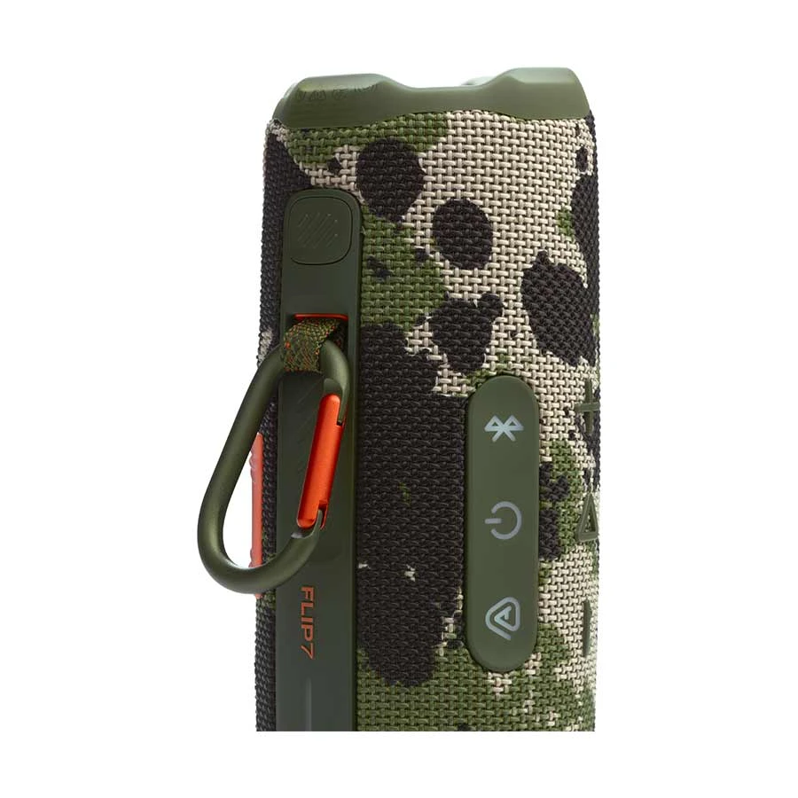 JBL Flip 7 Portable Bluetooth Speaker Color: Squad delivers bold JBL Pro Sound enhanced by AI Sound Boost, projecting rich bass and clear highs that defy its compact design. Engineered for adventure, this speaker boasts IP68 waterproof, dustproof, and drop-proof durability. With up to 16 hours of playtime—inclusive of a Playtime Boost for 2 extra hours—you can chase sunsets, beach beats, or tailgates without pause. Effortlessly pair multiple speakers using Auracast™ for immersive soundscapes. For audiophiles, lossless USB-C playback offers pristine fidelity, while the PushLock system lets you clip it on using interchangeable accessories. Wrapped in eco-friendly materials and styled in camo-inspired Squad tones, this portable powerhouse is built to amplify every moment with unyielding energy.