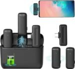 Dock the lightweight transmitters into the sleek, earbud‑style charging case (800 mAh capacity) for up to 5 full recharges, ensuring non‑stop creativity. The dual‑channel Type‑C receiver plugs directly into most modern Android devices—no app, no Bluetooth—offering instant plug‑&‑play action. Plus, real‑time headphone monitoring delivers professional control over your audio quality as you record. Elevate your sound, amplify your presence—experience audio brilliance with the J12.