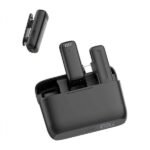 A: Each mic delivers 6–7 h of recording, and the case (800 mAh) recharges them about five times