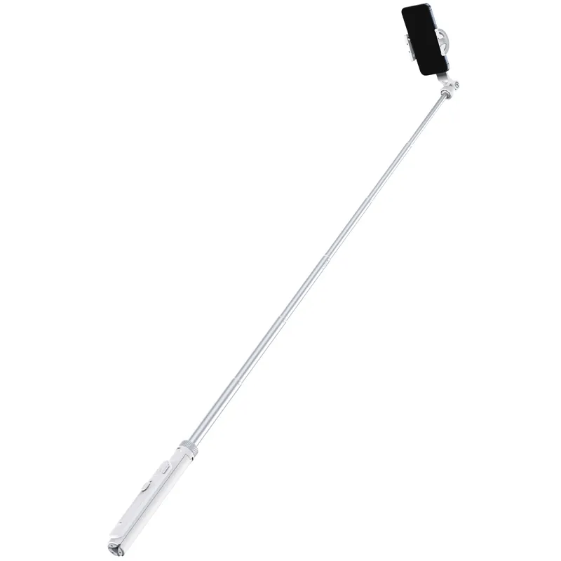 A: The telescopic pole stretches from 30 cm up to 144 cm, enabling overhead or group shots with ease